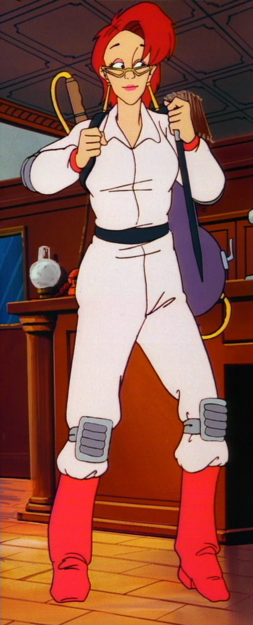 | Janine looks better in the light sandy-beige "classic" suit. Unfortunately, her Real Ghostbusters counterpart got stuck with a bright pink and red costume instead. |
